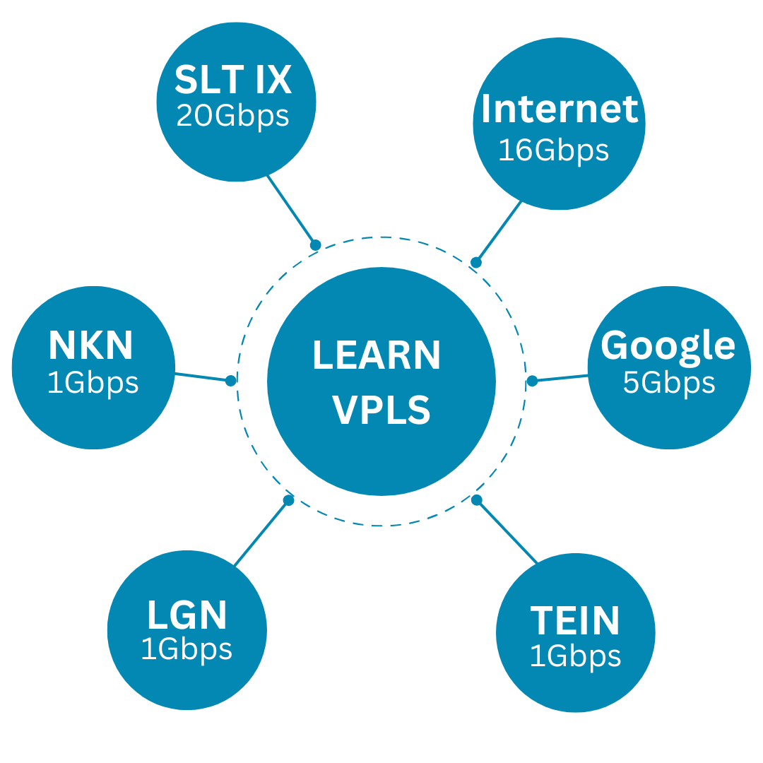 LEARN Network provides redundant international connectivity through multiple operators. At present, our IP transits include a 10 Gbps commodity Internet, through Dialog, and a 4Gbps link to the commodity Internet, through Sri Lanka Telecom, and a 1Gbps link to the academic/research Internet through the TEIN4 network.